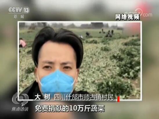 這是什邡市師古鎮(zhèn)的一個(gè)農(nóng)村網(wǎng)紅,網(wǎng)名叫大樹哥。疫情發(fā)生以后,他也想為武漢做點(diǎn)什么。他說(shuō),自己沒什么錢,但是地里有菜。